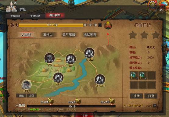 1. 挑战只能从第一位群仙开始,获胜后方可挑战下一位群仙