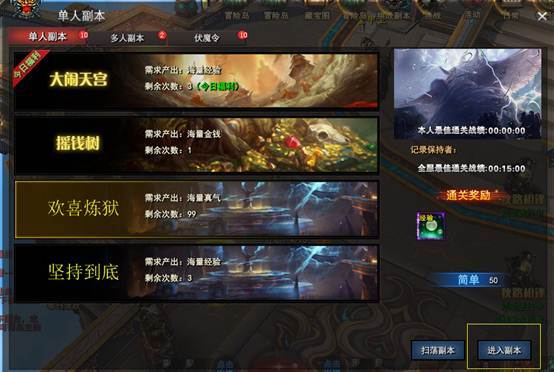 2) 副本限时15分钟,最多可刷三十波怪物,击杀满三十波怪物即通过副本。