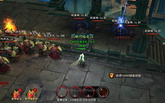 1) 玩家进入副本后系统开始刷怪,怪物朝指定目的地移动,击杀怪物可获得巨额经验。
