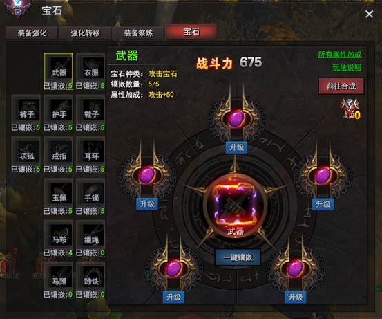 3个相同的低级宝石100%成功合成于1个高级的宝石,不需要消耗任何其它货币及材料。